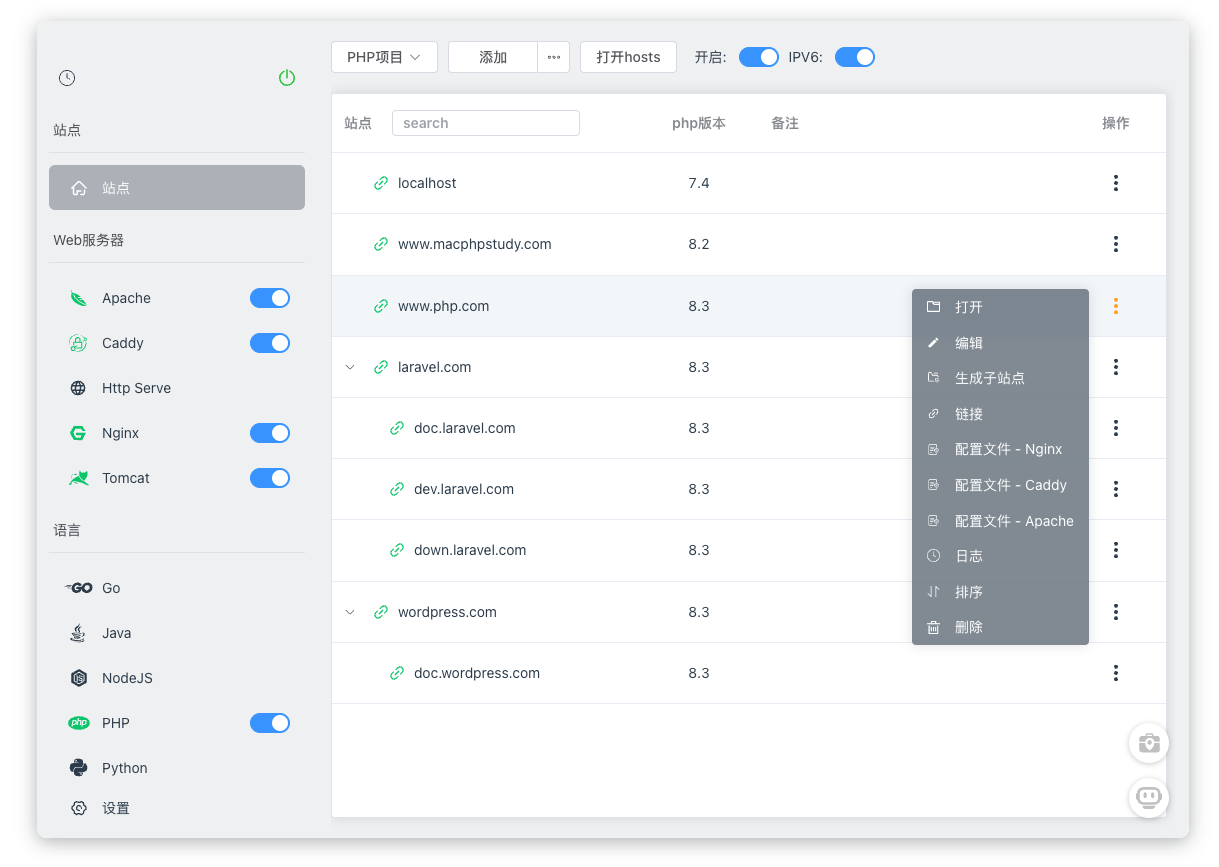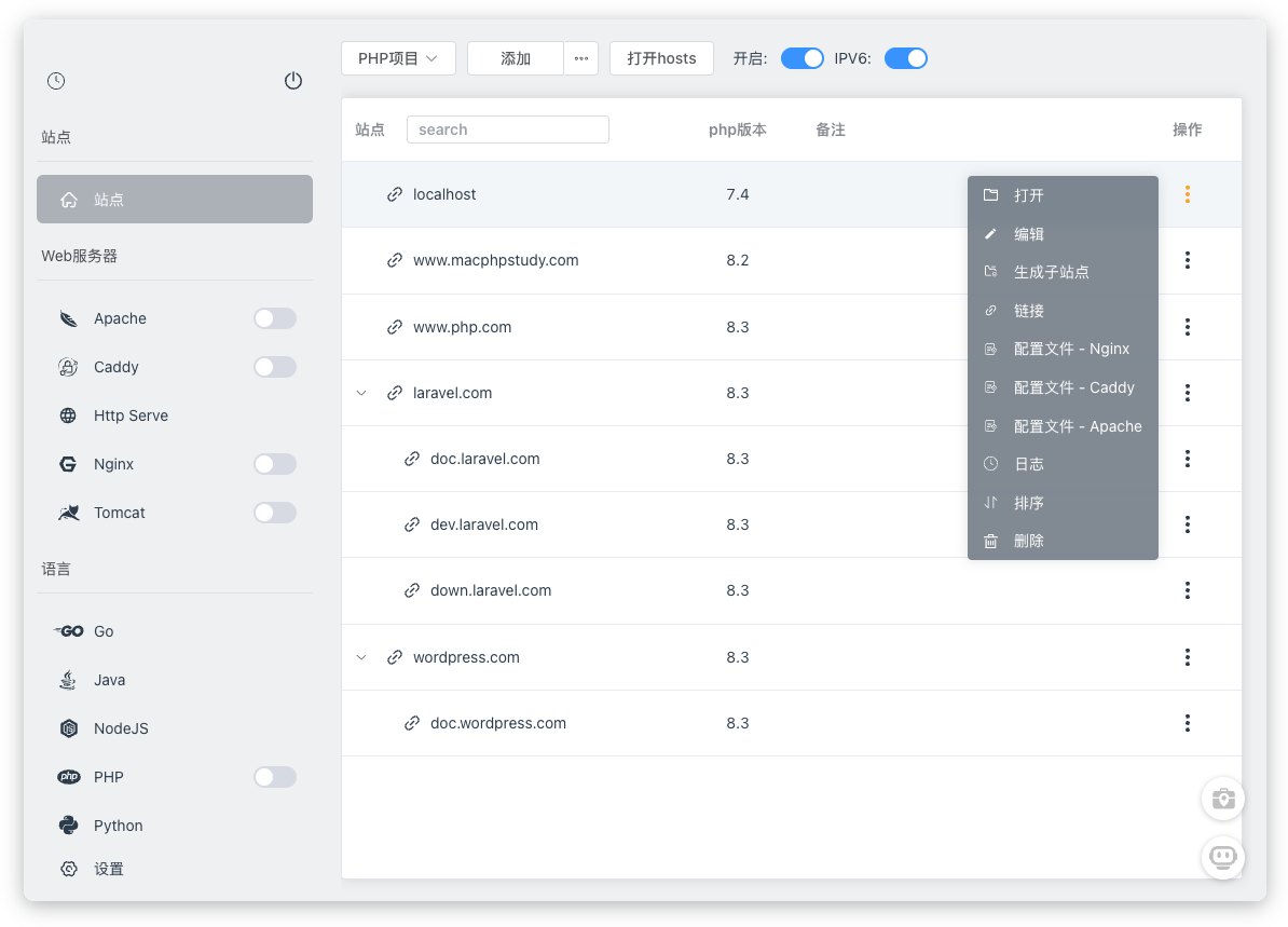 FlyEnv是一个集Web服务器/数据库服务器/开发环境管理于一体的GUI应用程序。